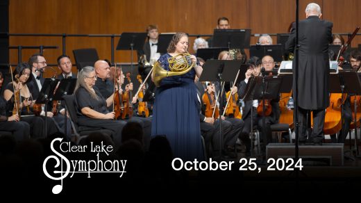The Clear Lake Symphony Orchestra presented a concert on October 25, 2024, performing Glinka’s Overture to Russian and Ludmilla, Samuel Barber’s Adagio for Strings, and Dvorak’s New World Symphony. Lindsay Smith was the featured soloist on Weber’s Concertino for Horn and Orchestra in E minor.